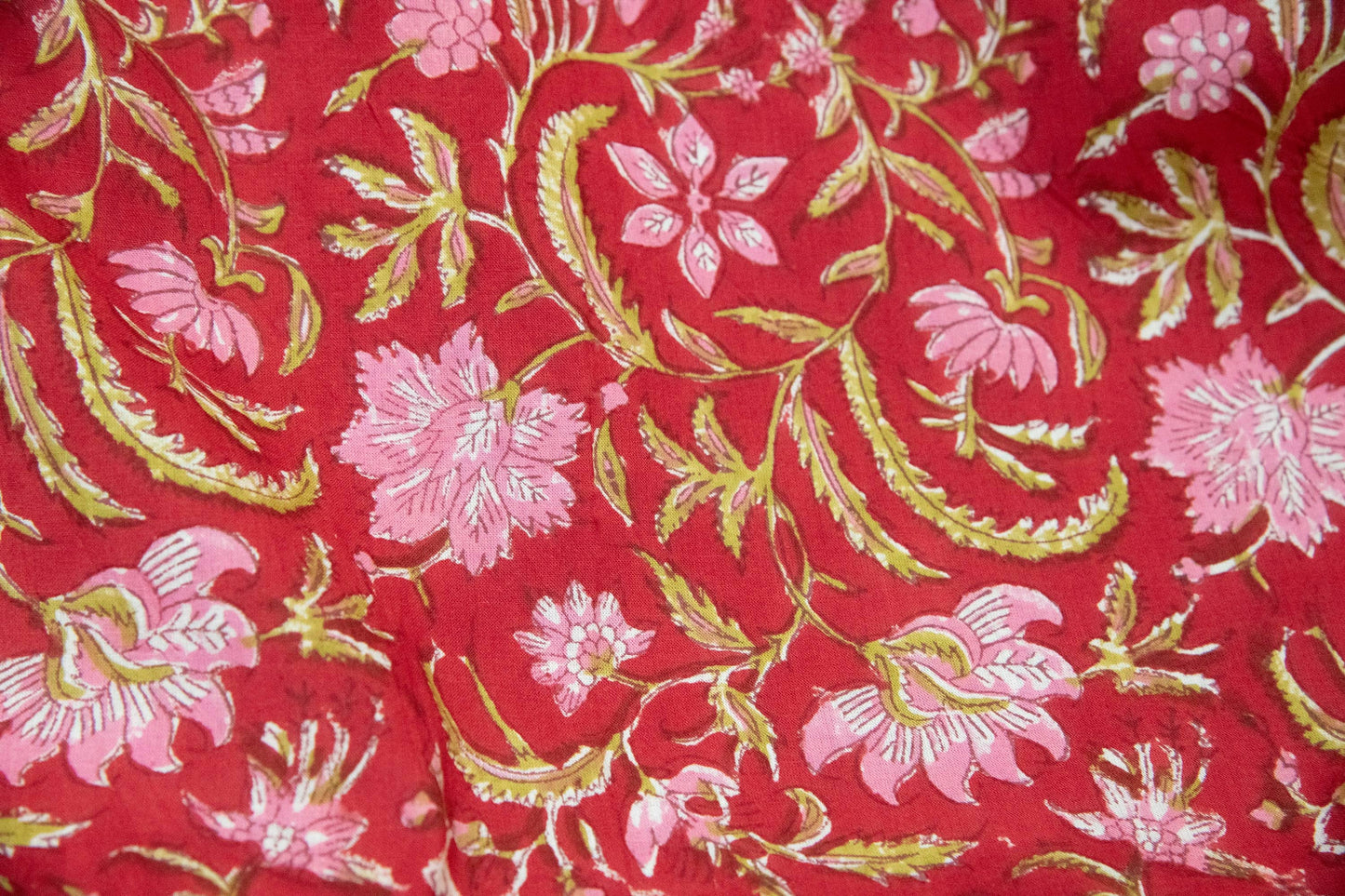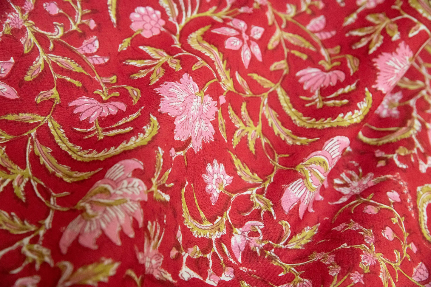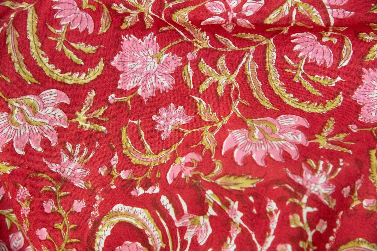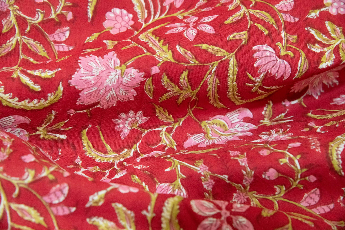 Listing is for a Dark red with pink floral vines hand block printed cotton fabric perfect for quilted projects, dresses and home decor