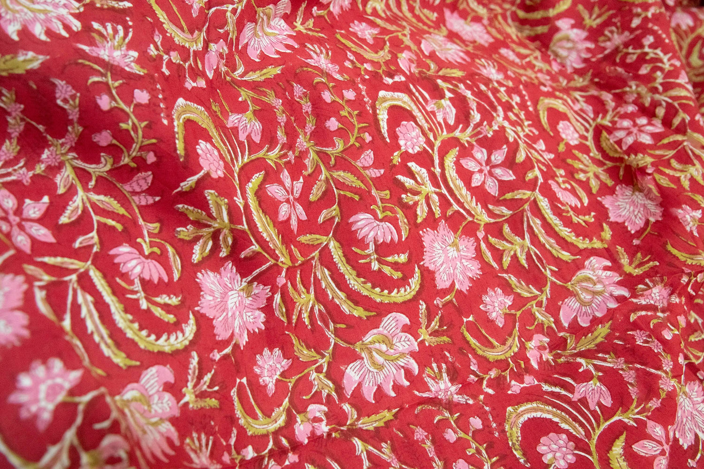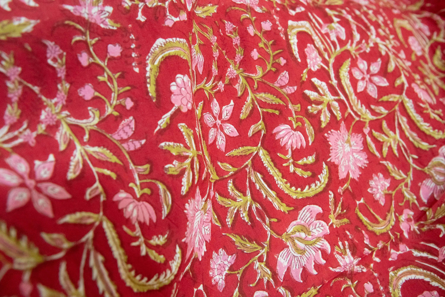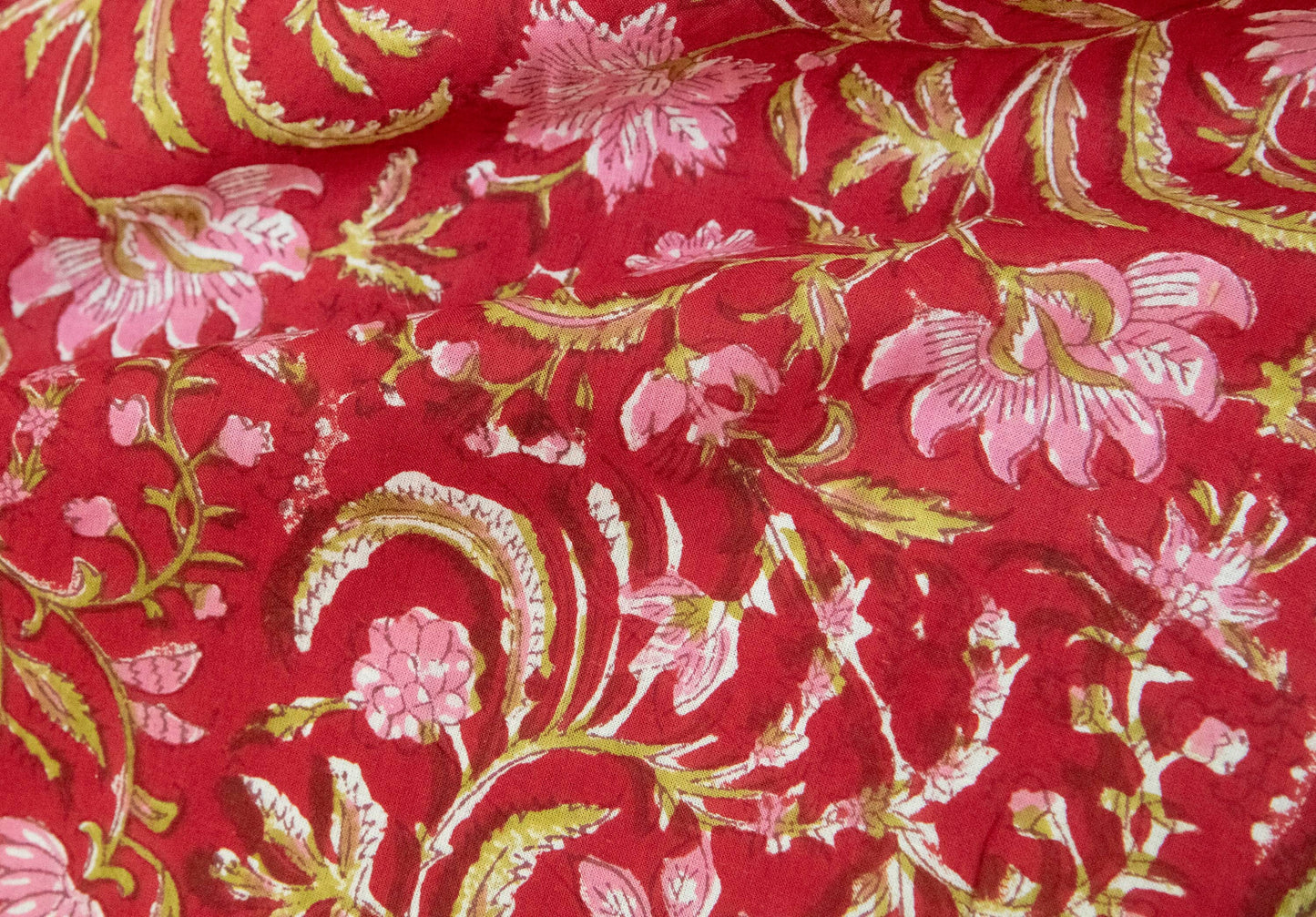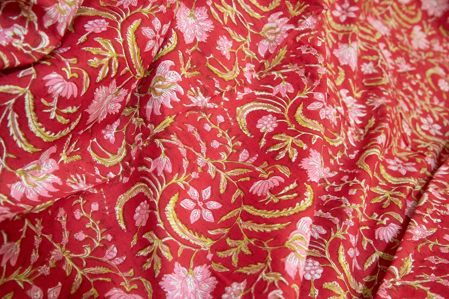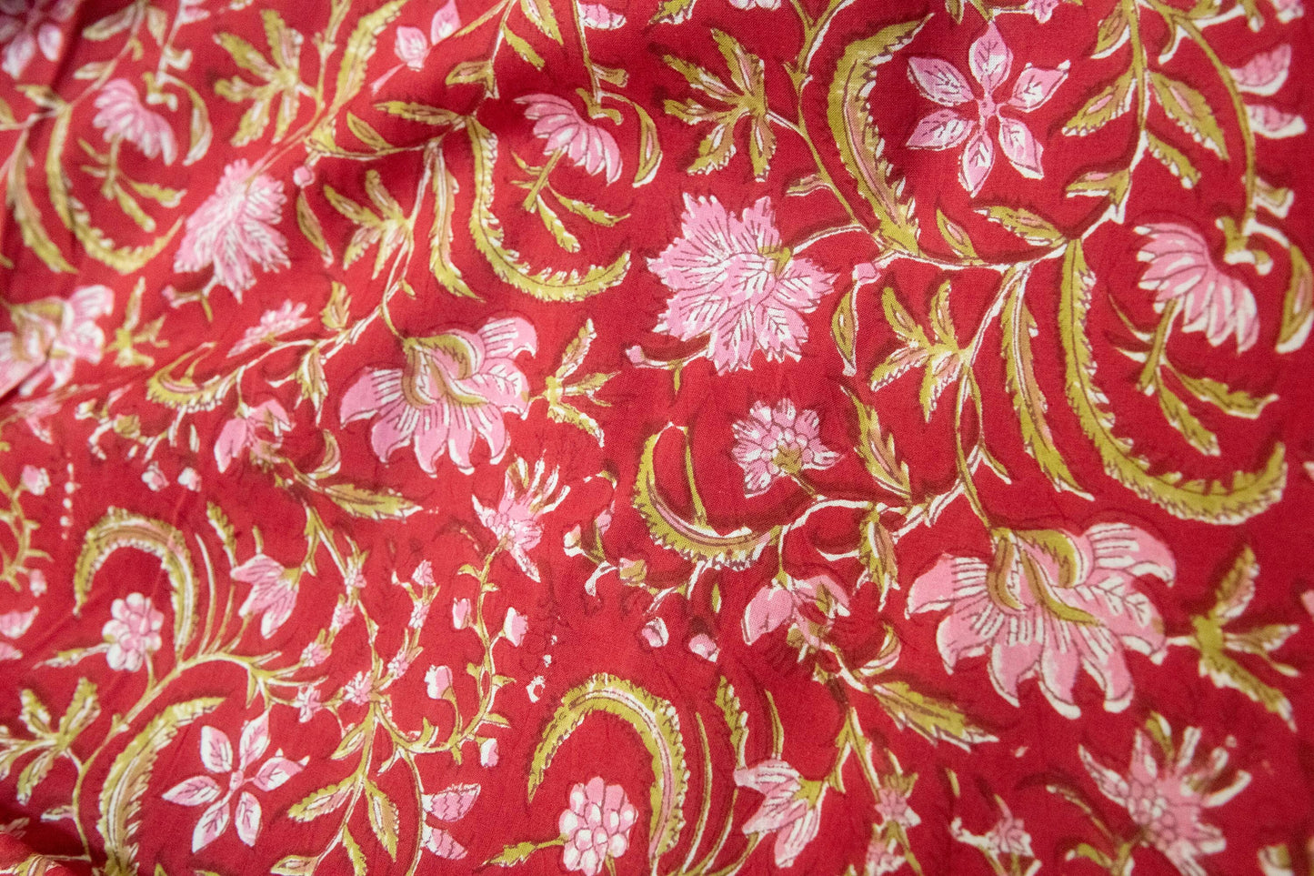 Listing is for a Dark red with pink floral vines hand block printed cotton fabric perfect for quilted projects, dresses and home decor