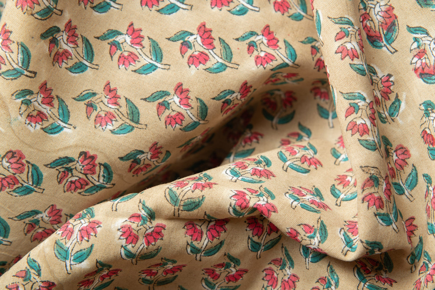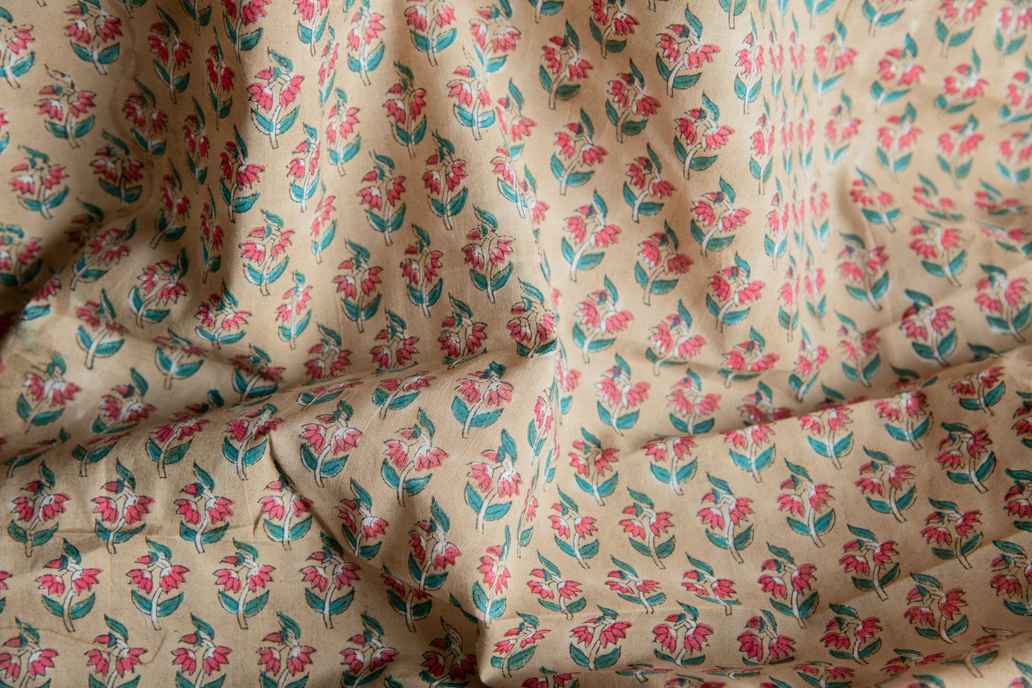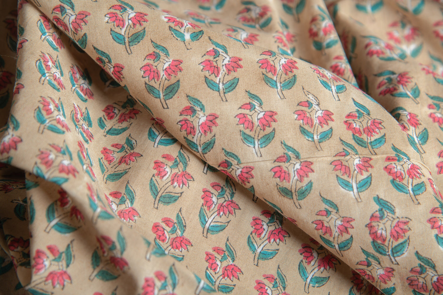 Ditsy pink red floral teal leaf hand block printed cotton fabric-tote bag fabric/girls dress fabric/quilting/decor/women's dress