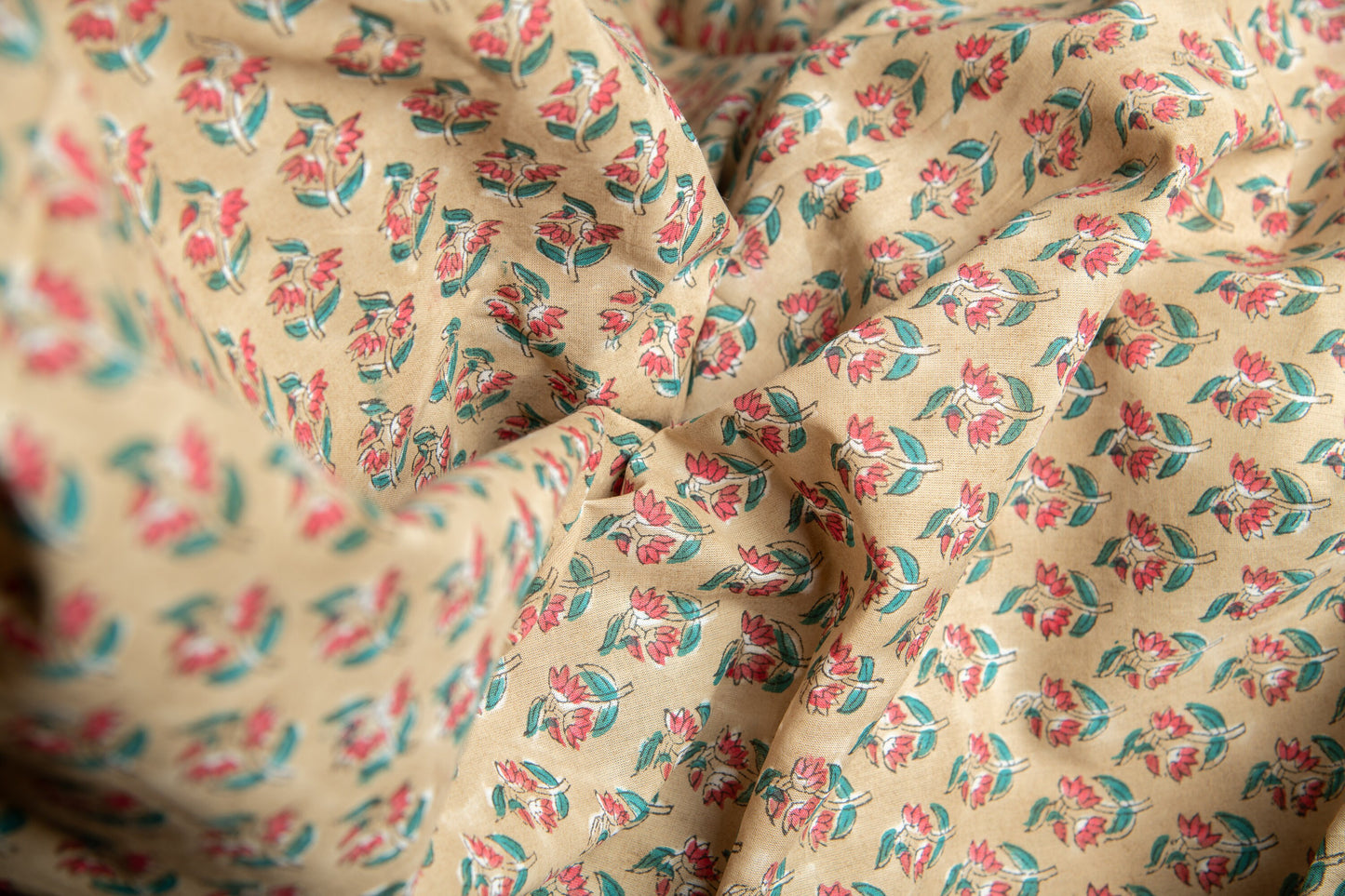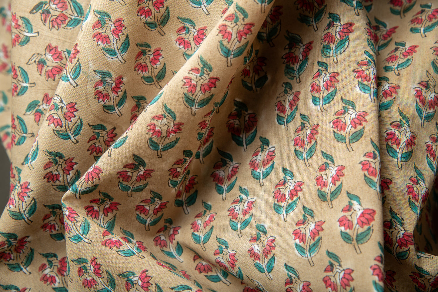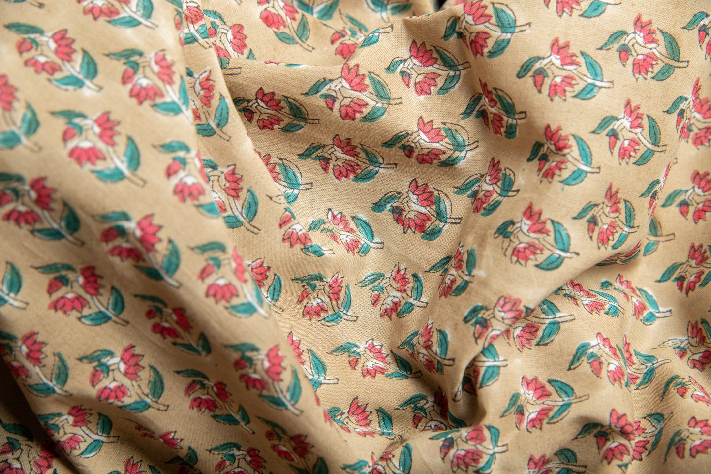 Ditsy pink red floral teal leaf hand block printed cotton fabric-tote bag fabric/girls dress fabric/quilting/decor/women's dress