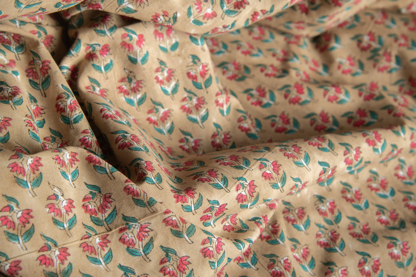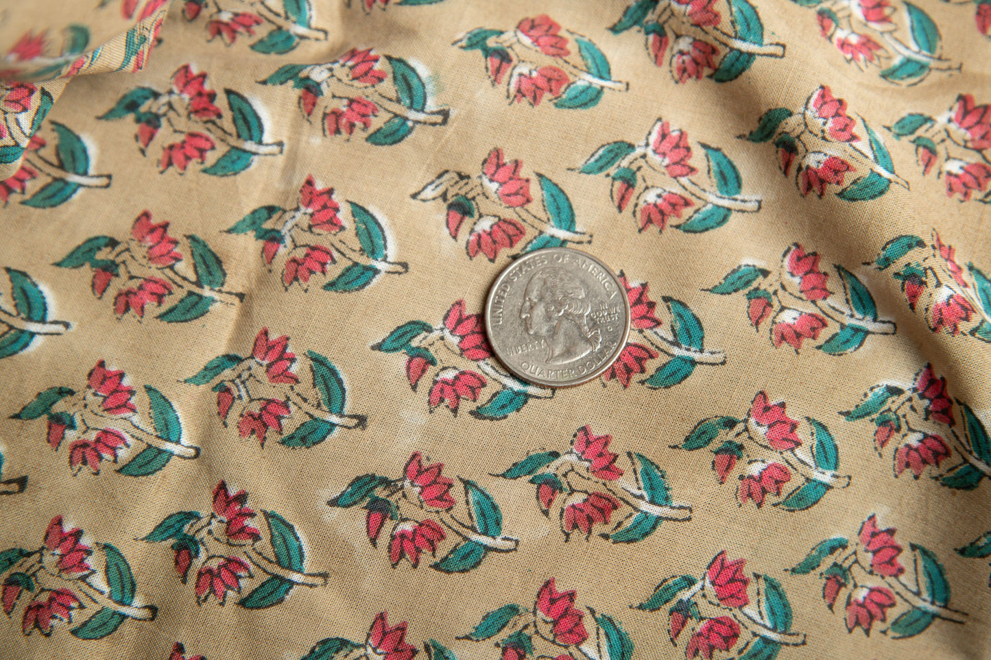 Listing is for a Ditsy pink red floral teal leaf hand block printed cotton fabric-tote bag fabric/girls dress fabric/quilting/decor/women's dress