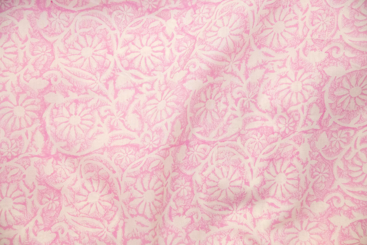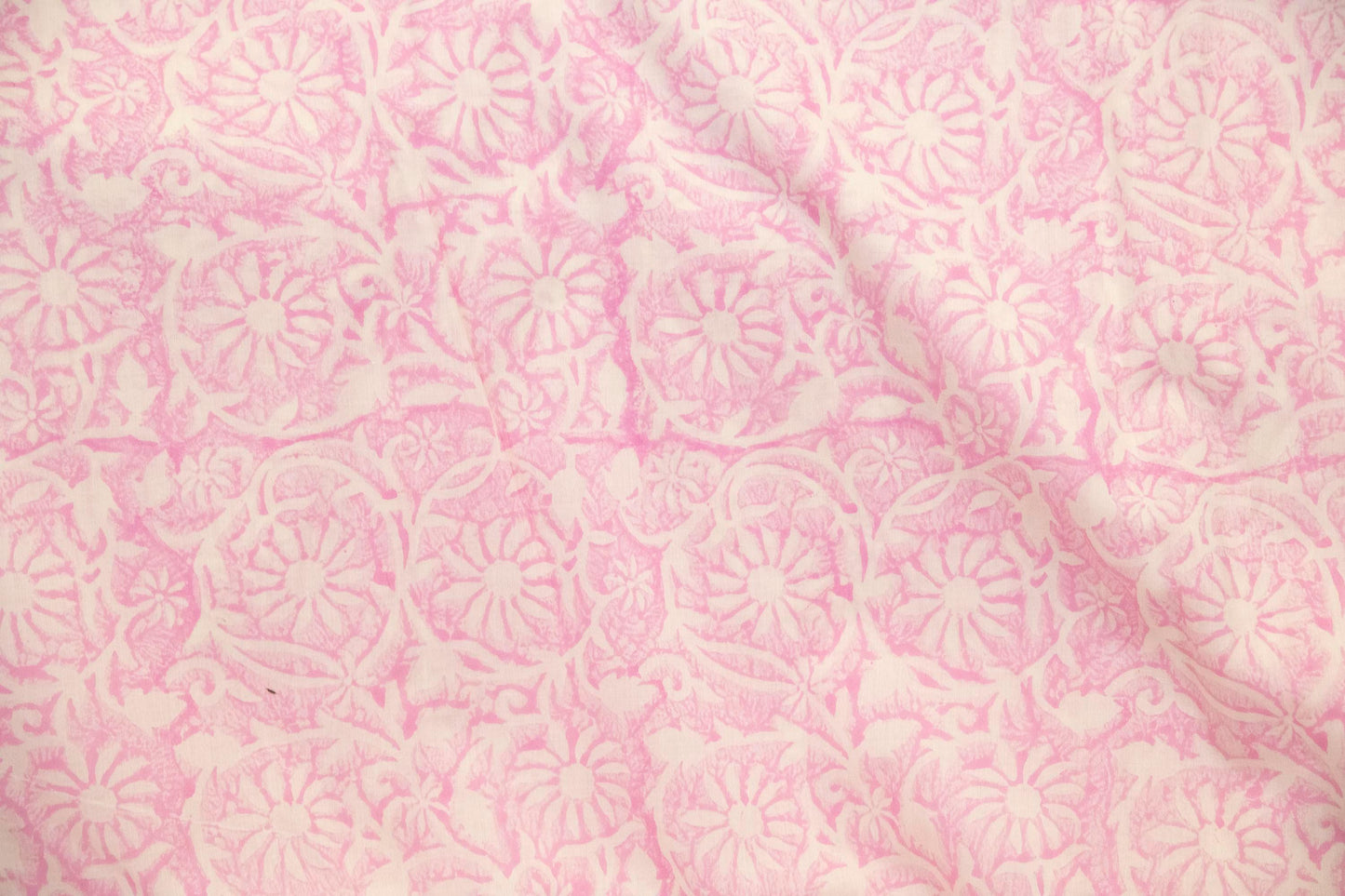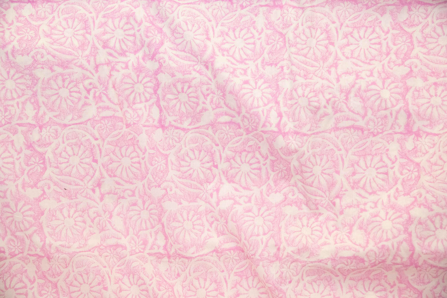 Listing is forMonotone baby pink floral vines hand block printed cotton fabric perfect for quilted projects, dresses and home decor