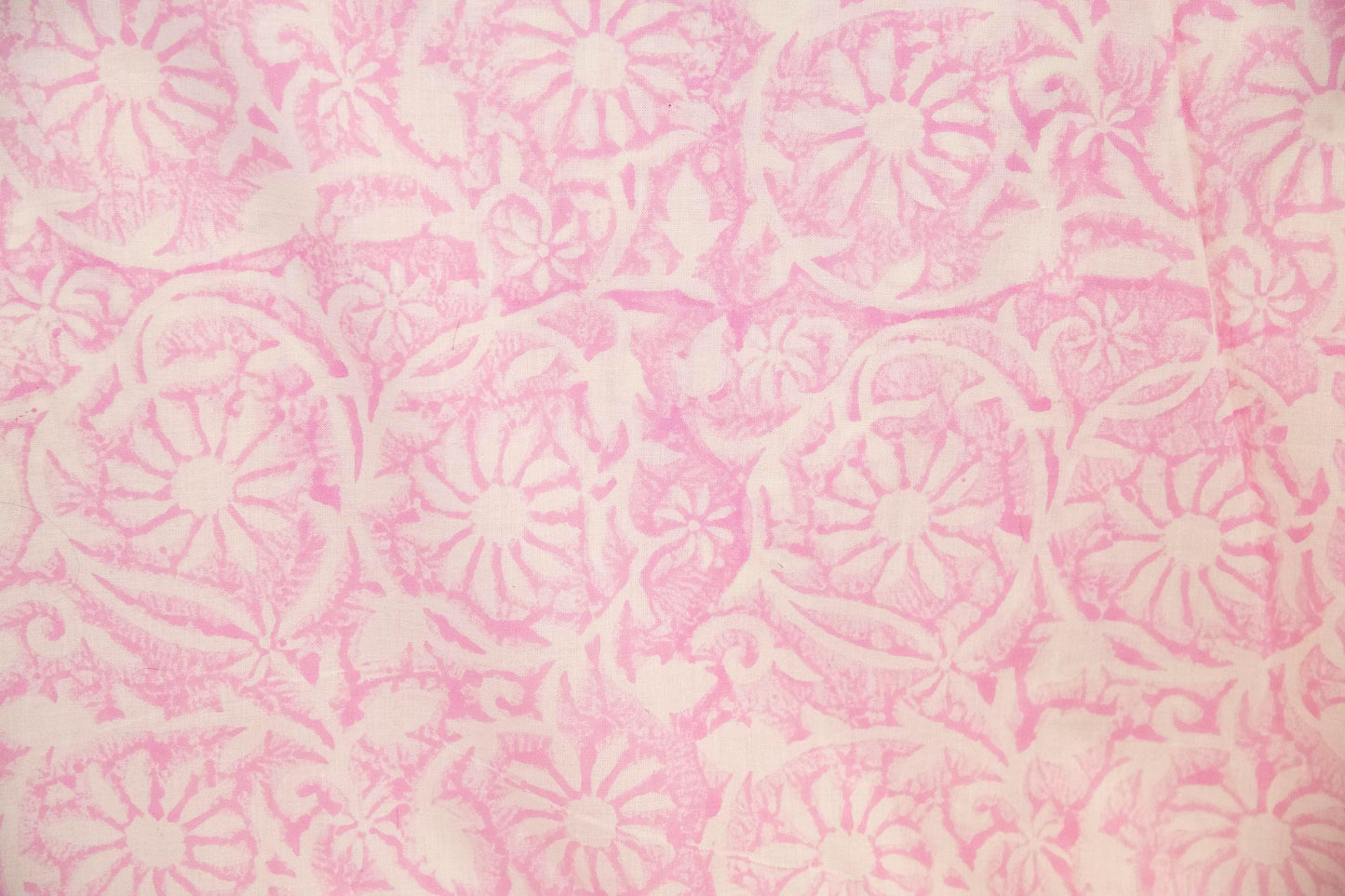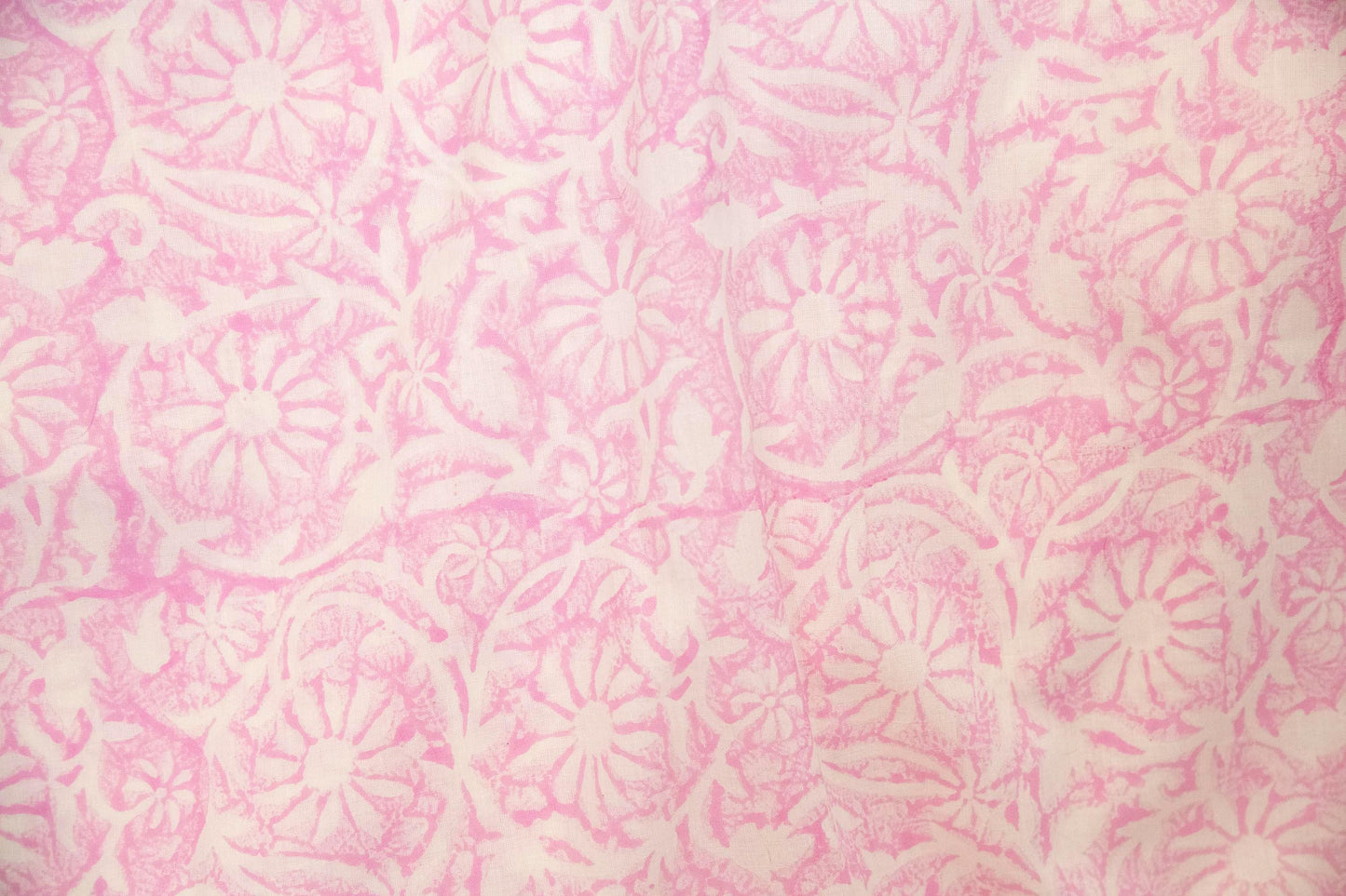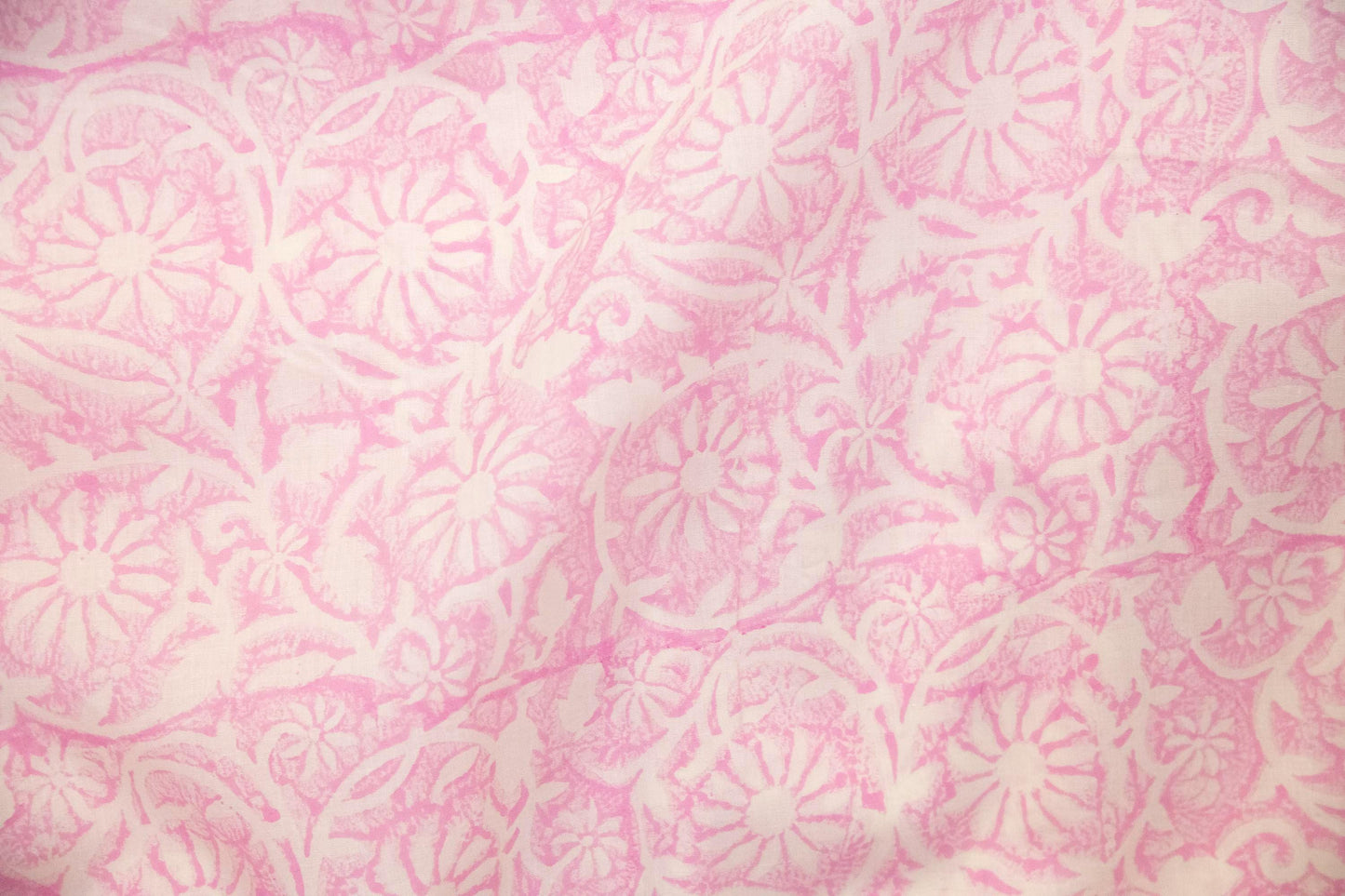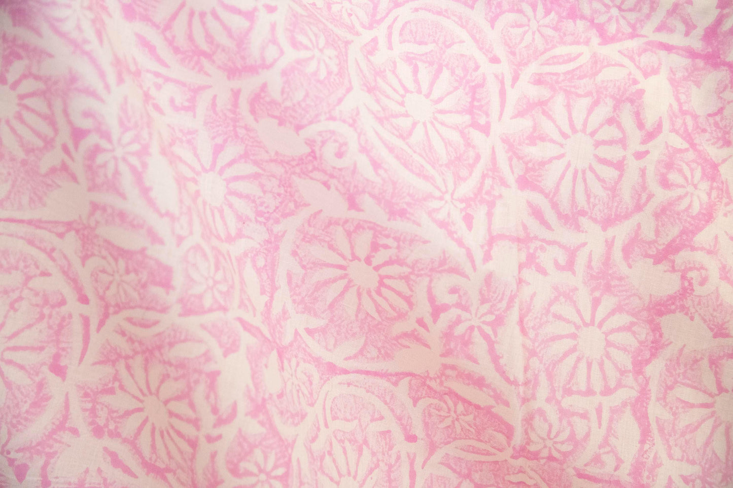 Listing is forMonotone baby pink floral vines hand block printed cotton fabric perfect for quilted projects, dresses and home decor